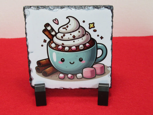 Hot Chocolate Slate Coaster | Cosy Winter Coaster | Hot Cocoa Gift | Natural Slate